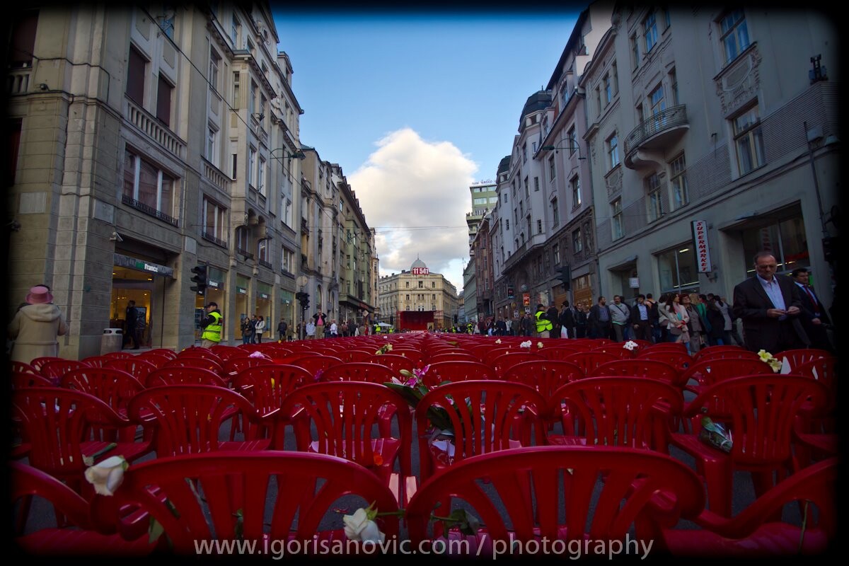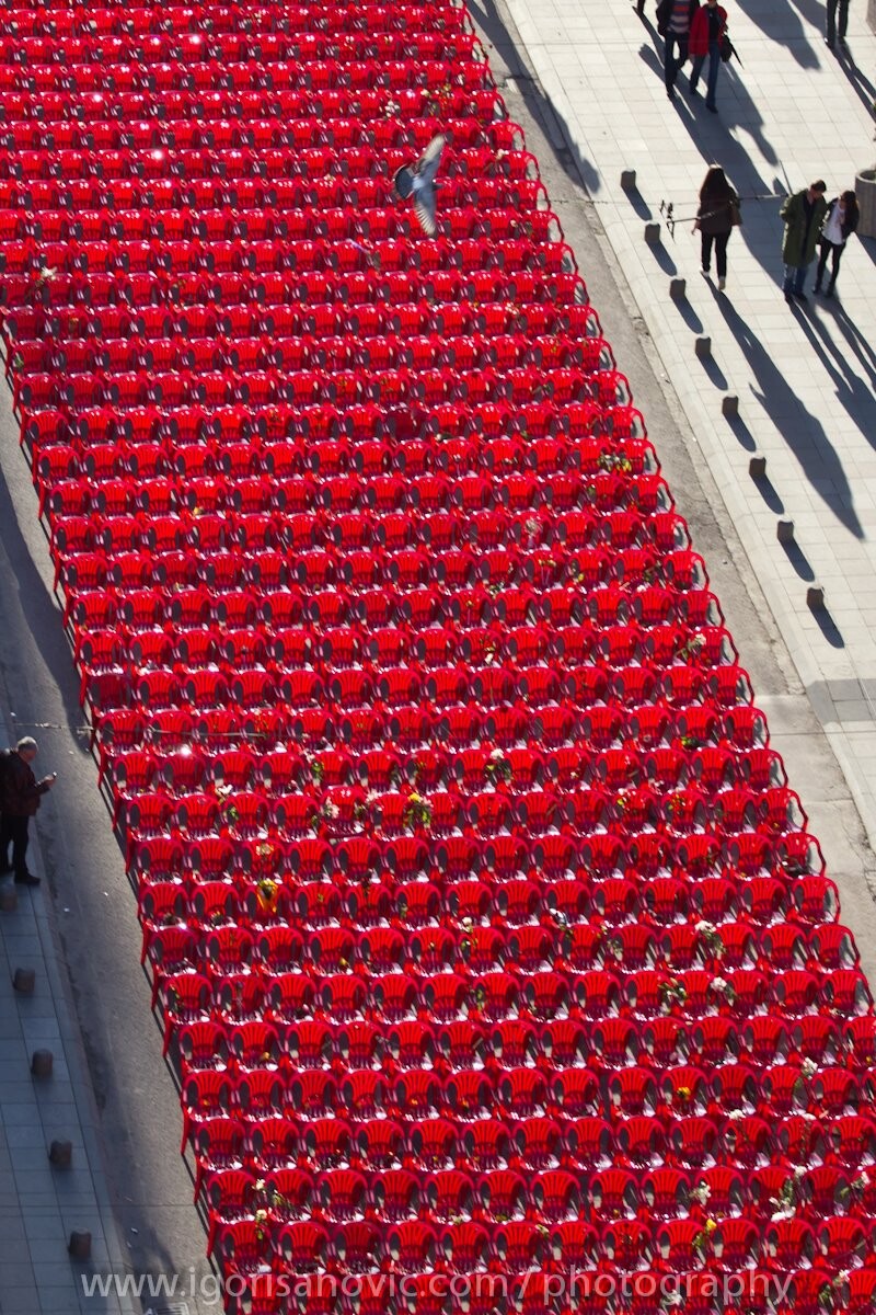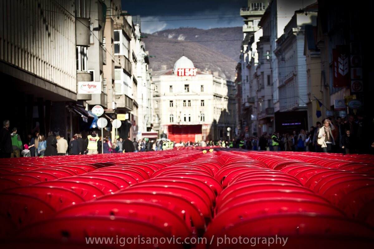 U trenucima kada se u Istočnom Sarajevu održavao centralni događaj povodom obilježavanja neustavnog dana RS, Sarajlije i mnogi drugi na društvenim mrežama dijelili su fotografiju crvenih stolica koje su bile postavljene na potezu od Vječne vatre do Alipašine džamije.