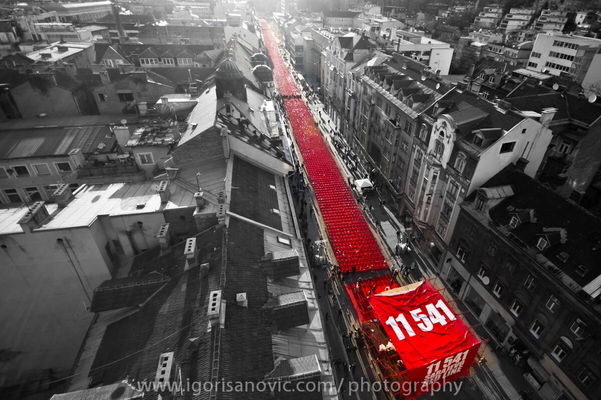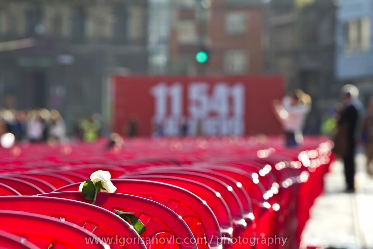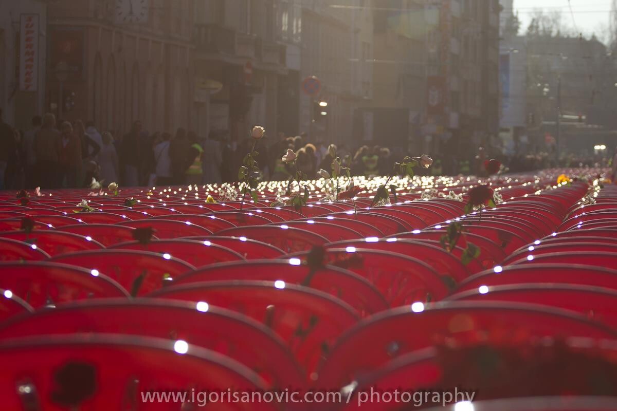 Društvenim mrežama jučer se masovno dijelila fotografija 11.541 crvene stolice postavljenih u znak Sarajlijama koji su stradali tokom agresije na Bosnu i Hercegovinu.
