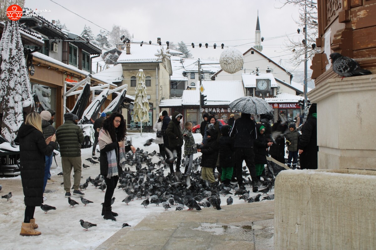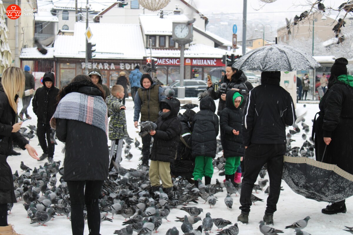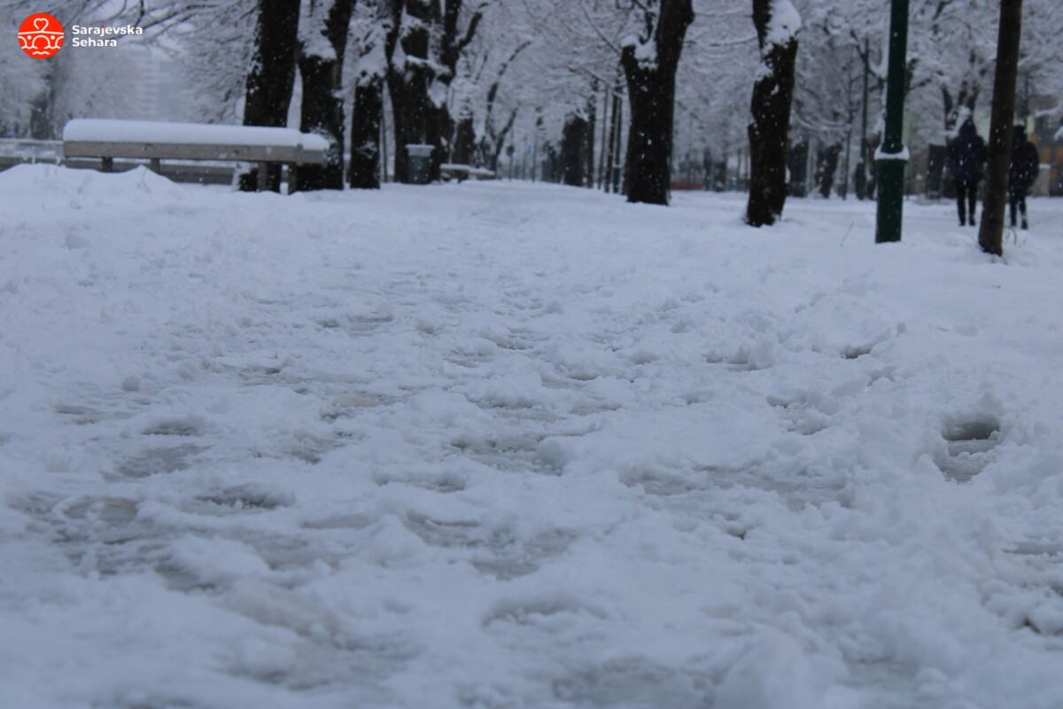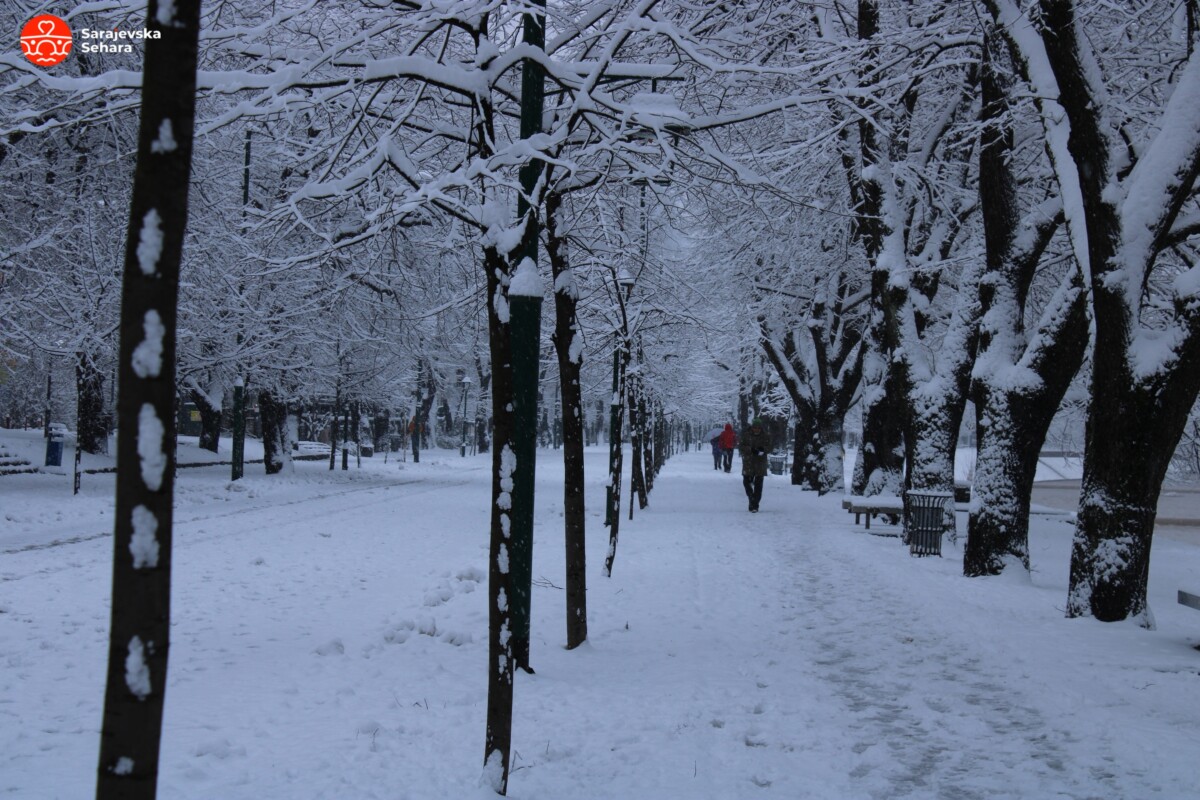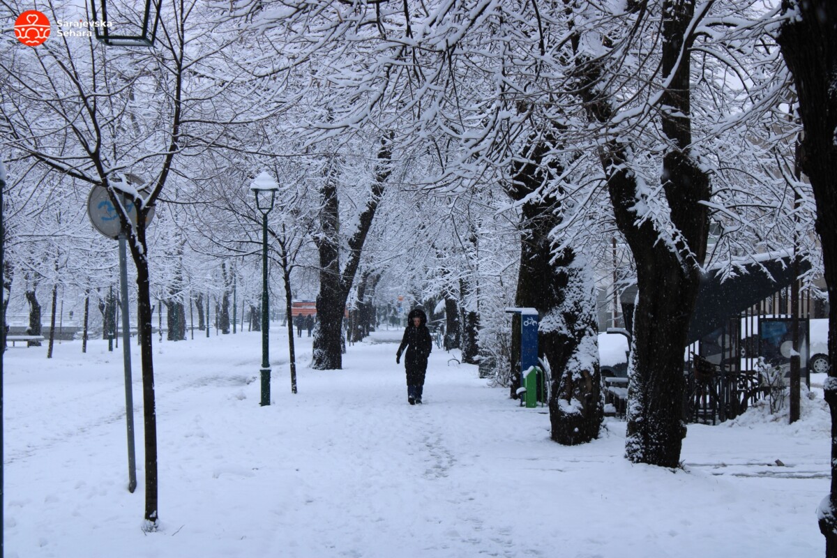 Inače, prema podacima Fedralnog hidrometeorološkog zavoda, na stanici Bjelave jutros je izmjereno četiri centimetara snijega, međutim, pojedinim dijelovima grada vidljive su veće količine snježnog pokrivača.