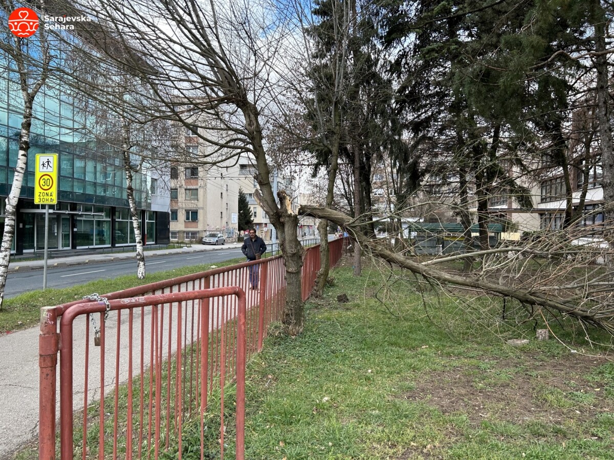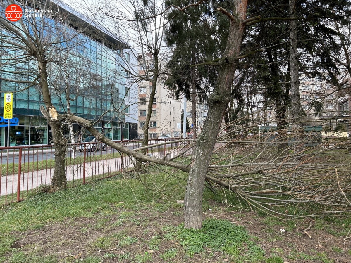 Kako je zabilježio naš report na Čengić Vili, tačnije na igralištu Osnovne škole “Osman Nakaš” stablo je puklo i srušilo se.