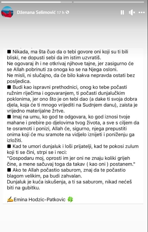 Također, Dženana Selimović je podijelila i nekoliko citata iz knjige islamske učenjakinje Emine Hodžić-Patković.