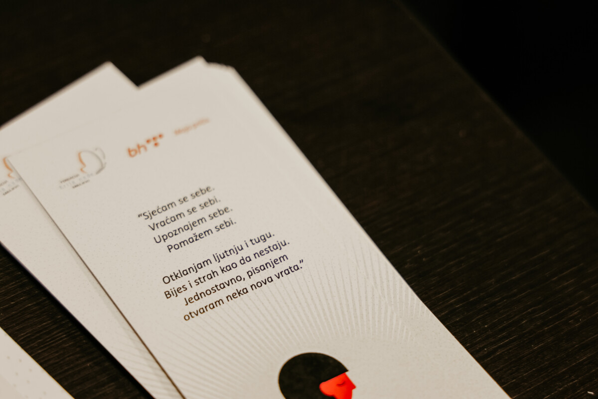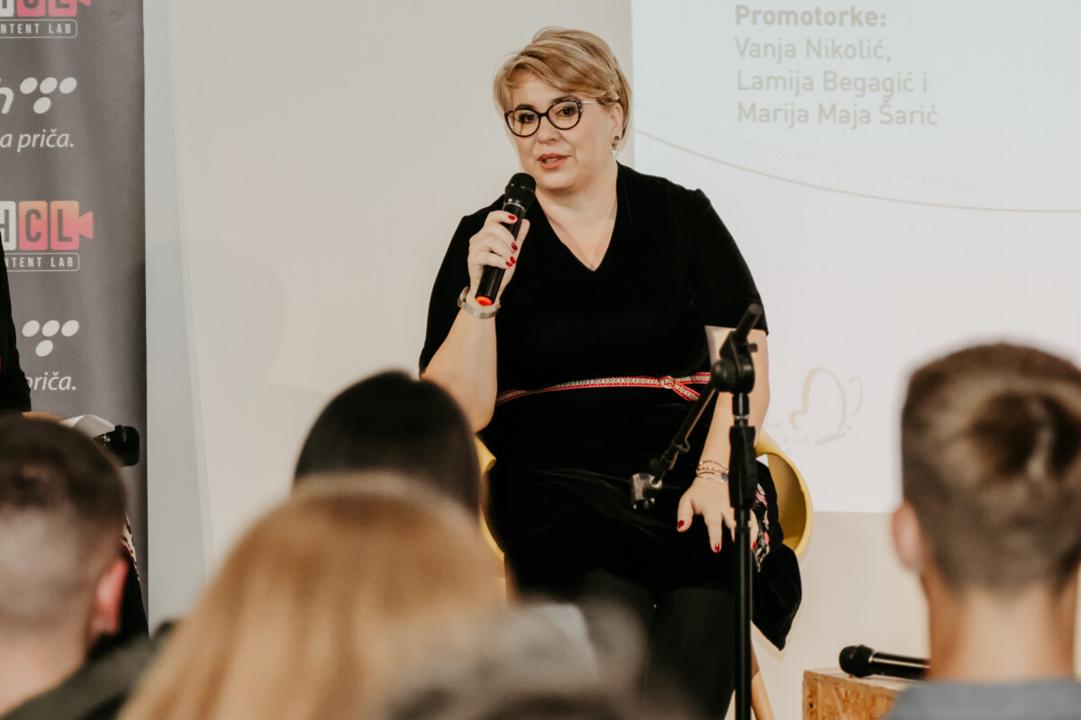 Uz moderaciju Sanele Dujković, knjigu su promovisale Vanja Nikolić, književnica i dramaturginja iz Srbije koja je i urednica knjige, Lamija Begagić, bh. književnica i recezentica knjige i Marija Maja Šarić, geštalt terapeutkinja i direktorica Fondacije Krila nade.