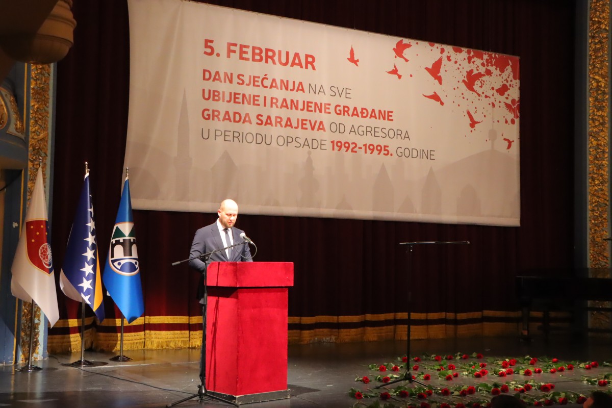 “Peti februar ’94 godine je tokom opsade u opkoljenom Sarajevu bio skoro svakog dana, jer je mučki ubijeno preko 11.500 građana Sarajeva, od kojih 1.601 dijete. Više od 50.000 građana Sarajeva je ranjeno, mnogi sa trajnim posljedicama.