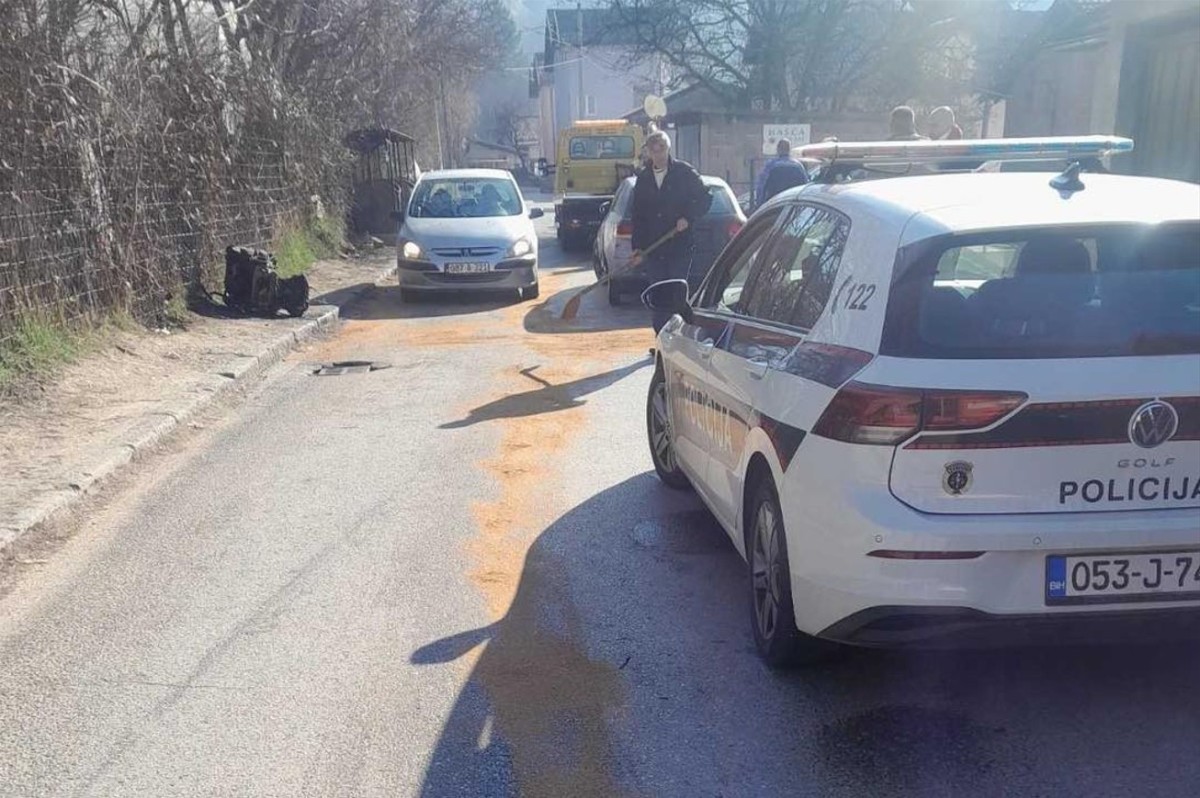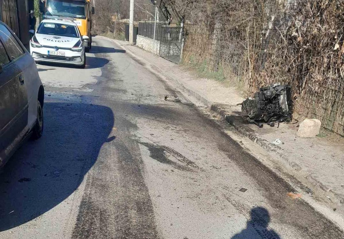 U ulici Sedrenik u Sarajevu evidentirana je teža saobraćajna nesreća usljed koje je, zbog siline udara, došlo do ispadanja motora iz vozila te rasipanja krhotina i tečnosti po saobraćajnici i trotoaru.